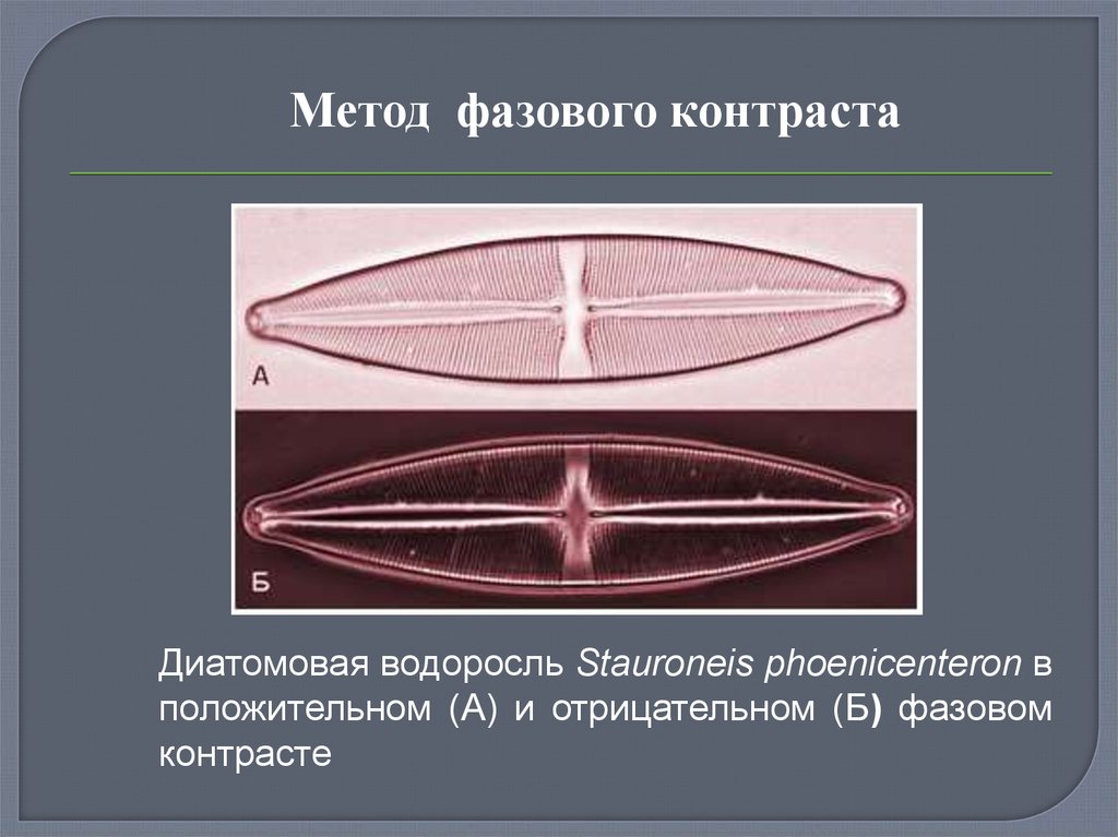 Метод фазового контрастаДиатомовая водоросль Stauroneis phoenicenteron в