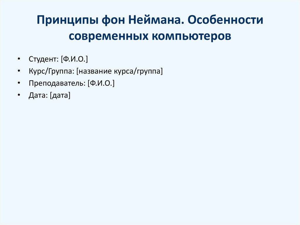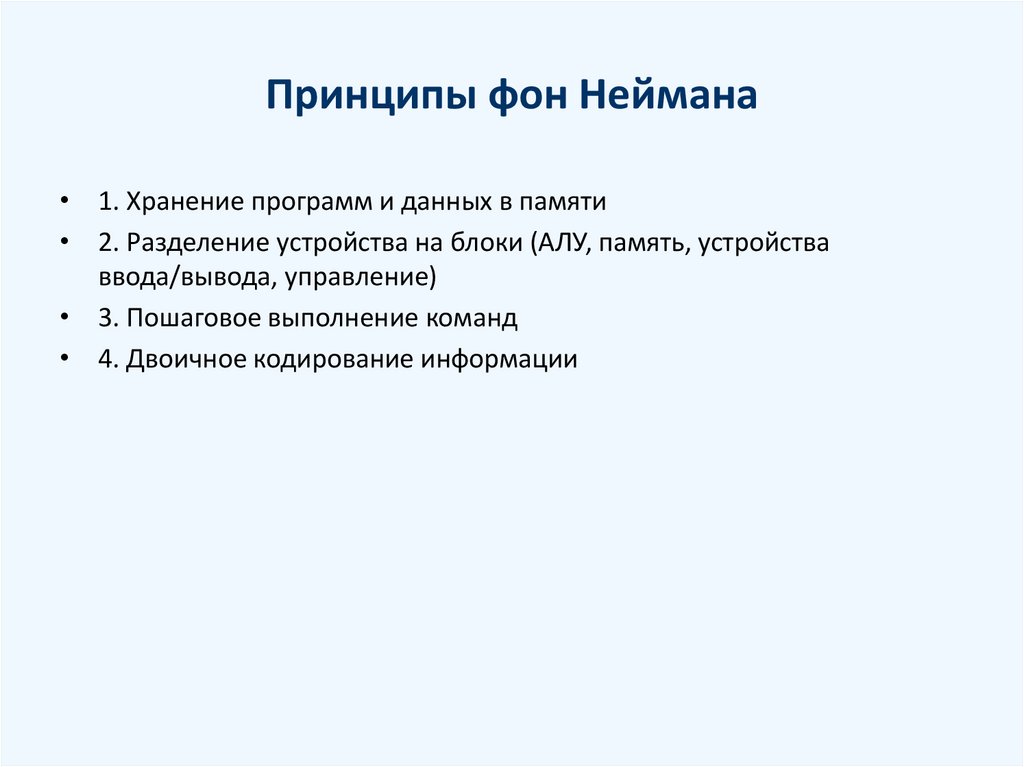 • - Цель: рассмотреть принципы фон Неймана и особенности