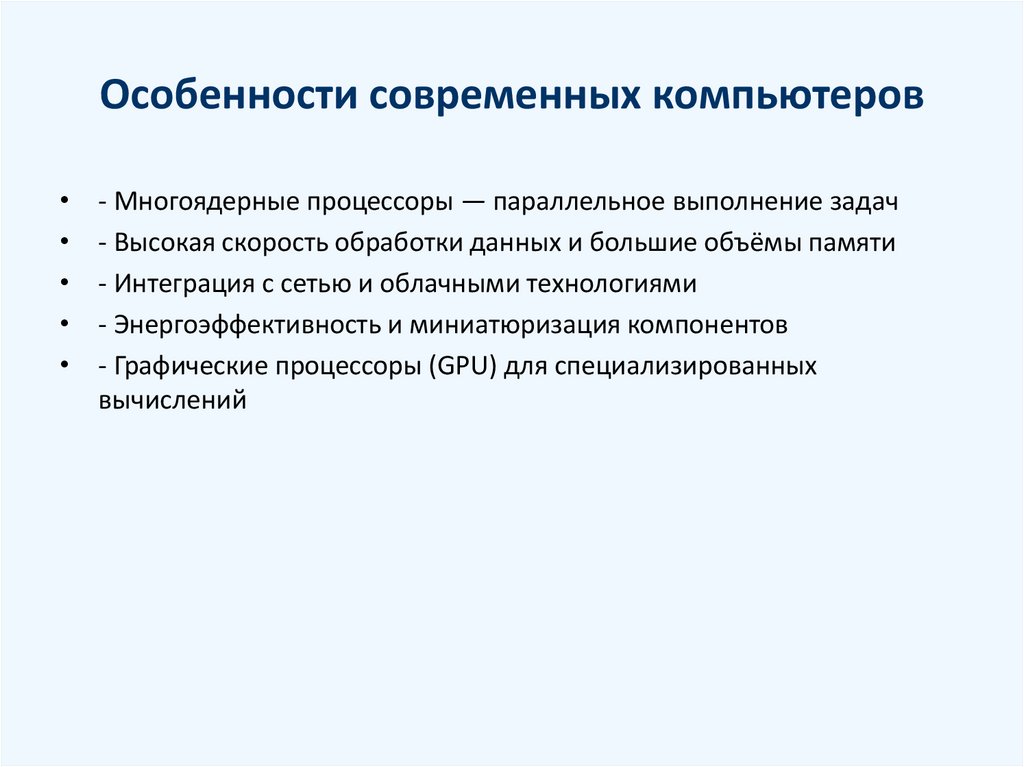 Особенности современных компьютеров- Многоядерные процессоры — параллельное выполнение задач