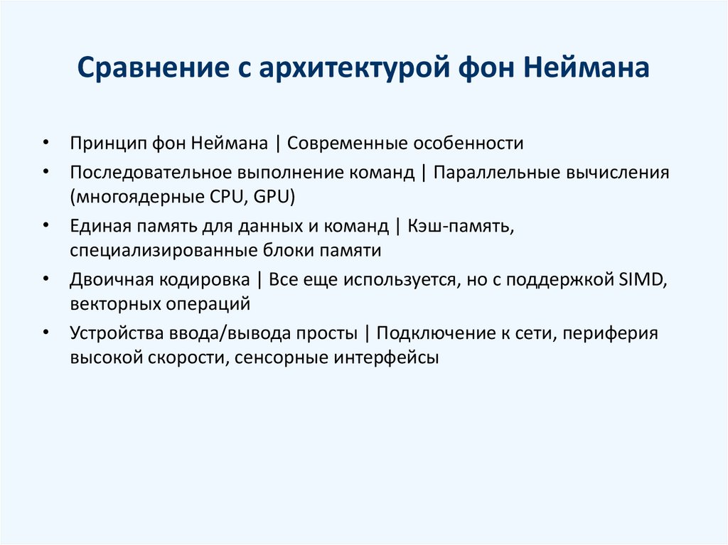 Сравнение с архитектурой фон Неймана• Принцип фон Неймана | Современные особенности