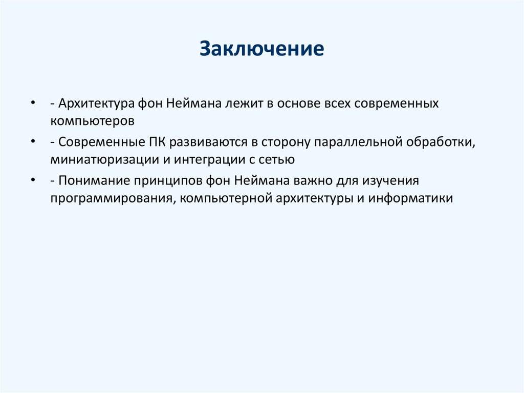 Заключение• - Архитектура фон Неймана лежит в основе всех современных