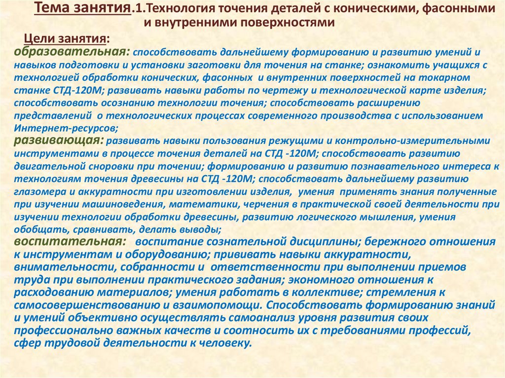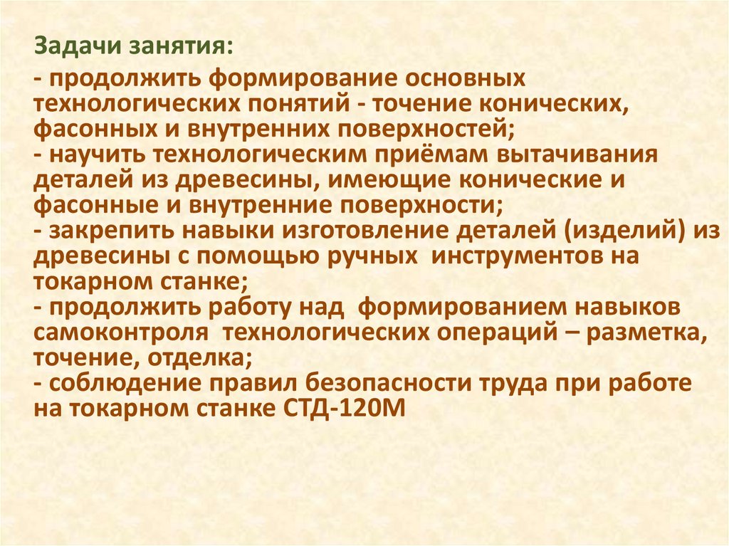технологиям точения древесины на СТД -120М; способствовать дальнейшему развитию