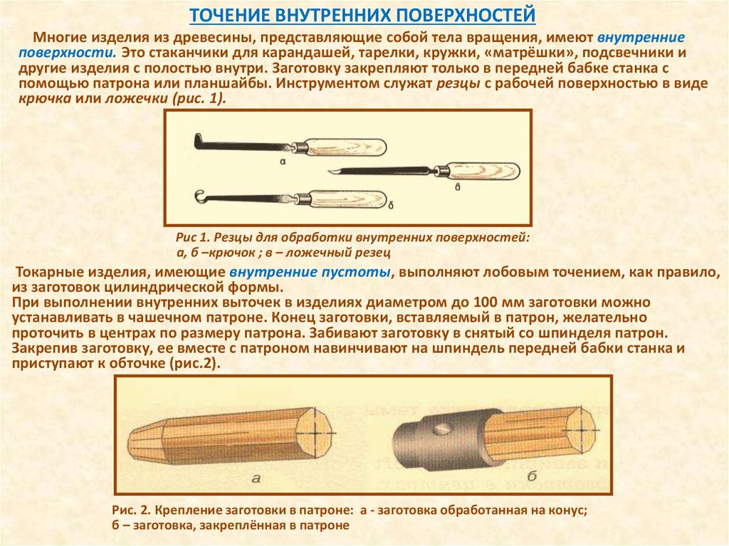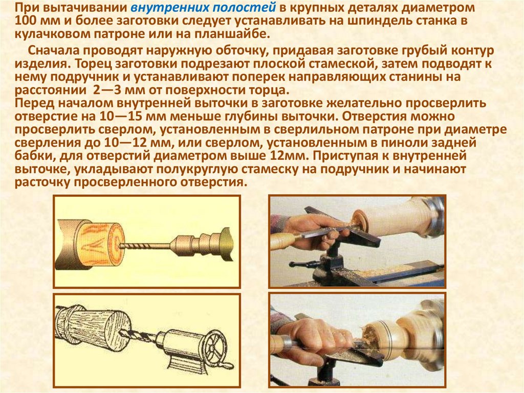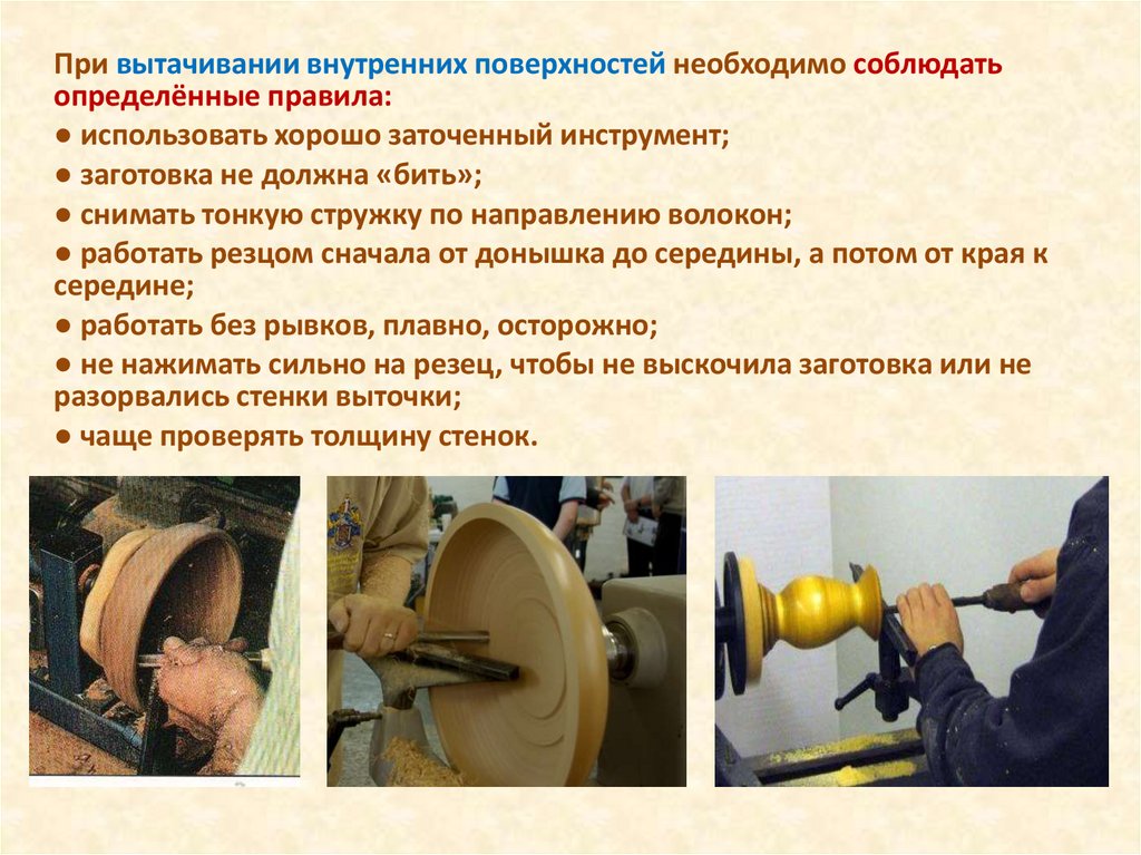 При вытачивании внутренних поверхностей необходимо соблюдатьопределённые правила:
