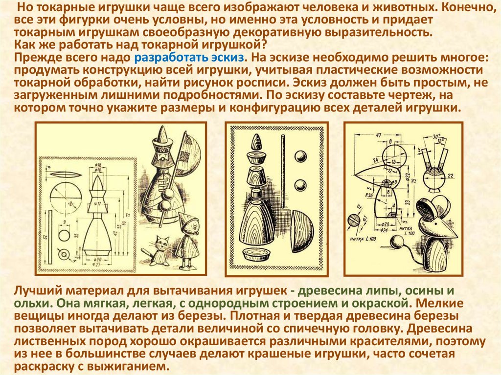 назначение изделия. Игрушки и сувениры хорошо точить из липы, осины, березы.