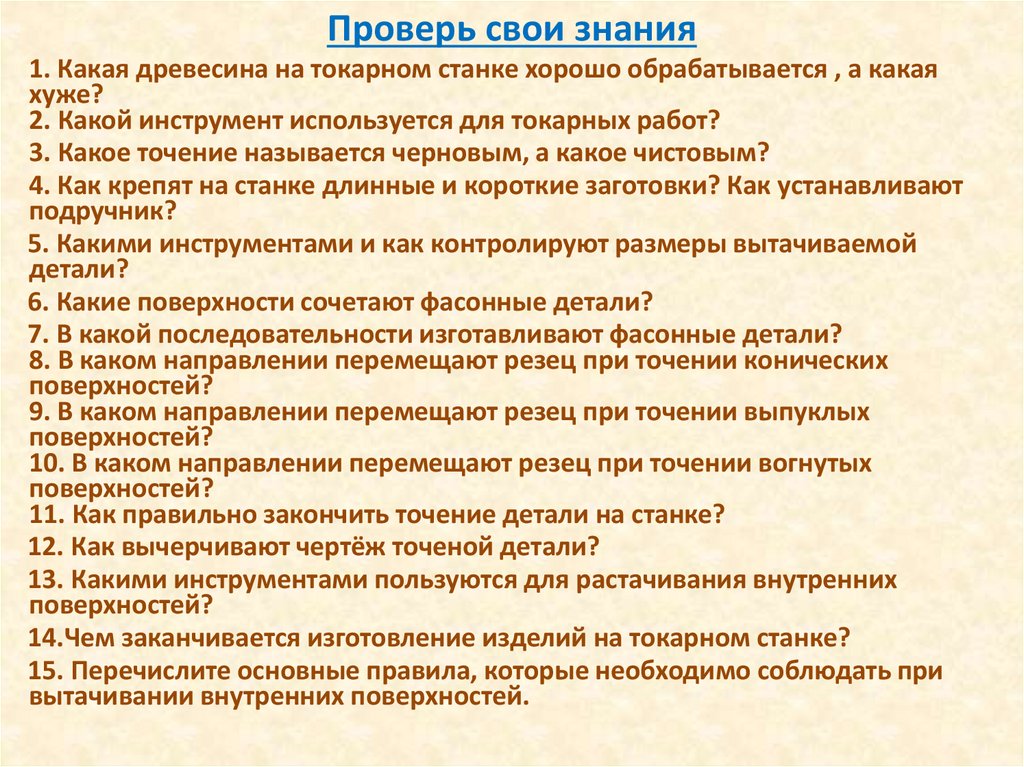 Проверь свои знания1. Какая древесина на токарном станке хорошо обрабатывается , а какая