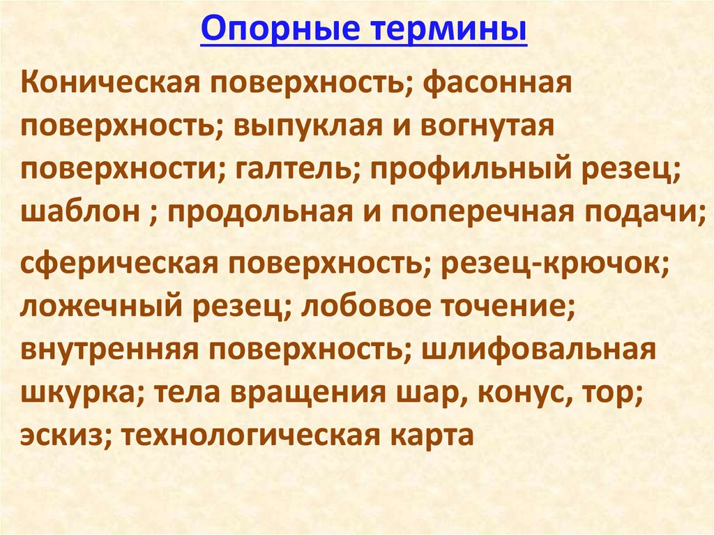 Тема занятия.1.Технология точения деталей с коническими, фасоннымии внутренними поверхностями