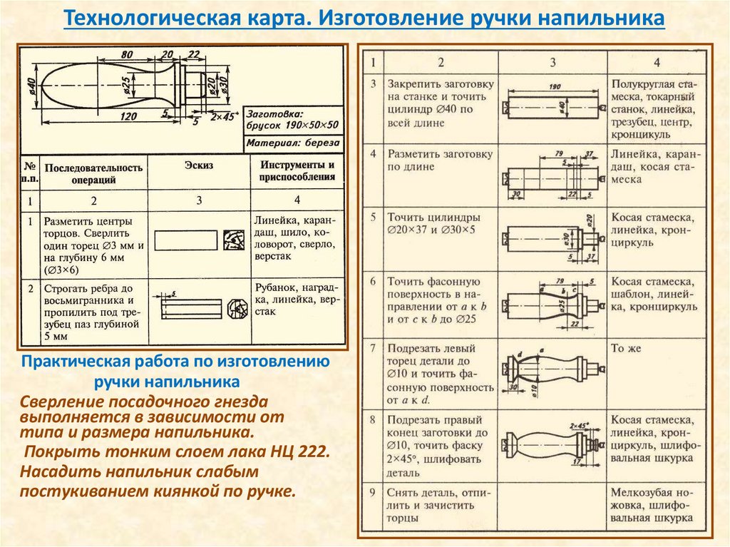 Технологическая карта. Изготовление ручки напильникаПрактическая работа по изготовлению