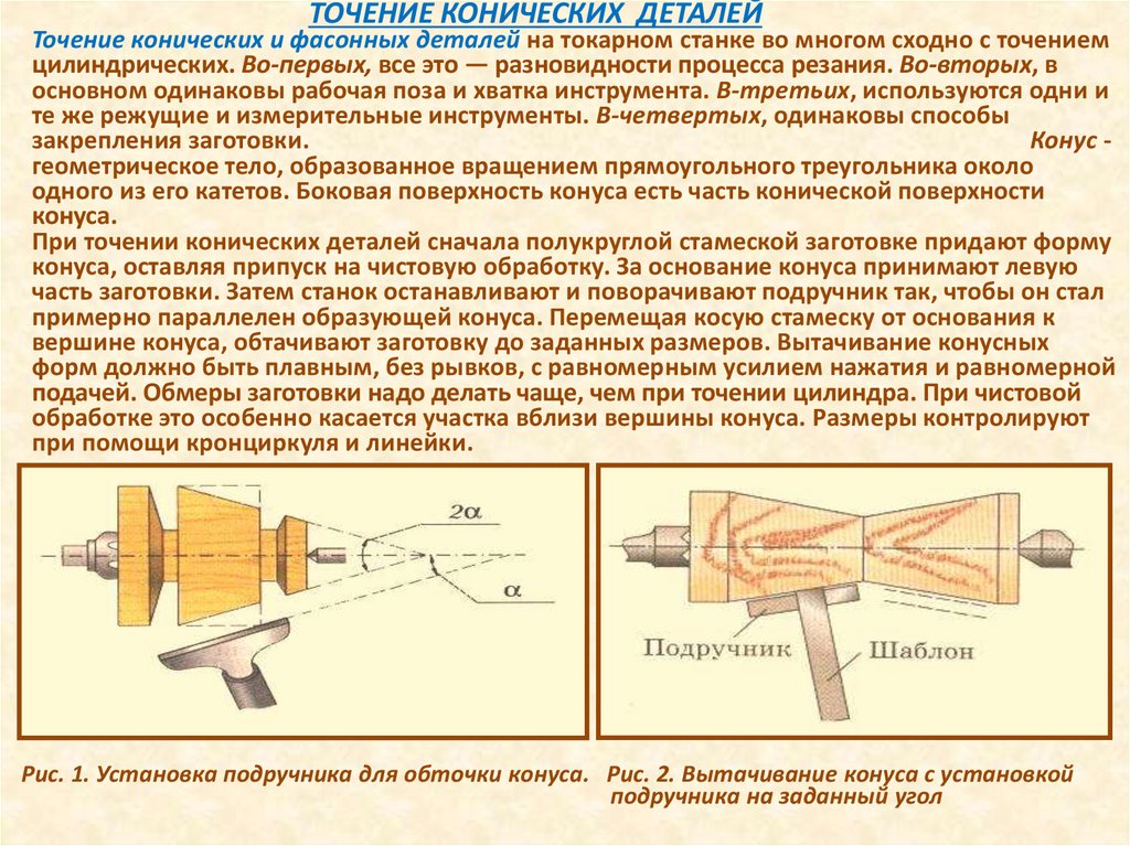 Рис. 1. Установка подручника для обточки конуса. Рис. 2. Вытачивание конуса с установкой