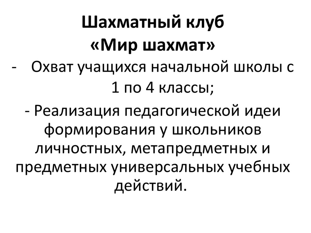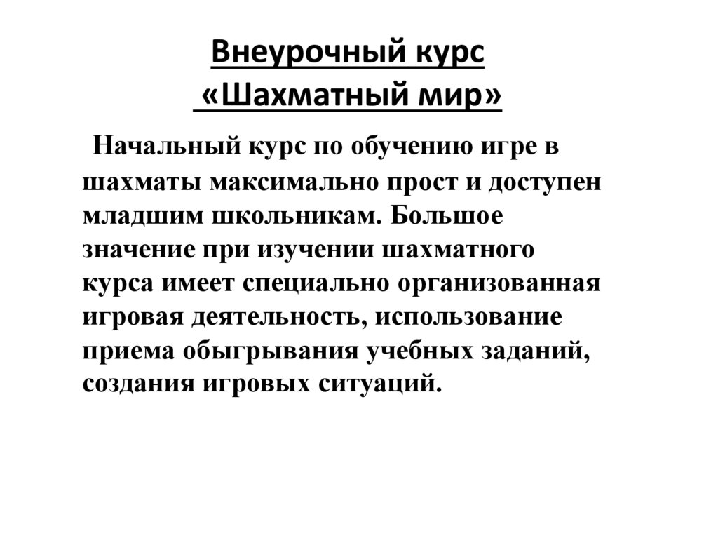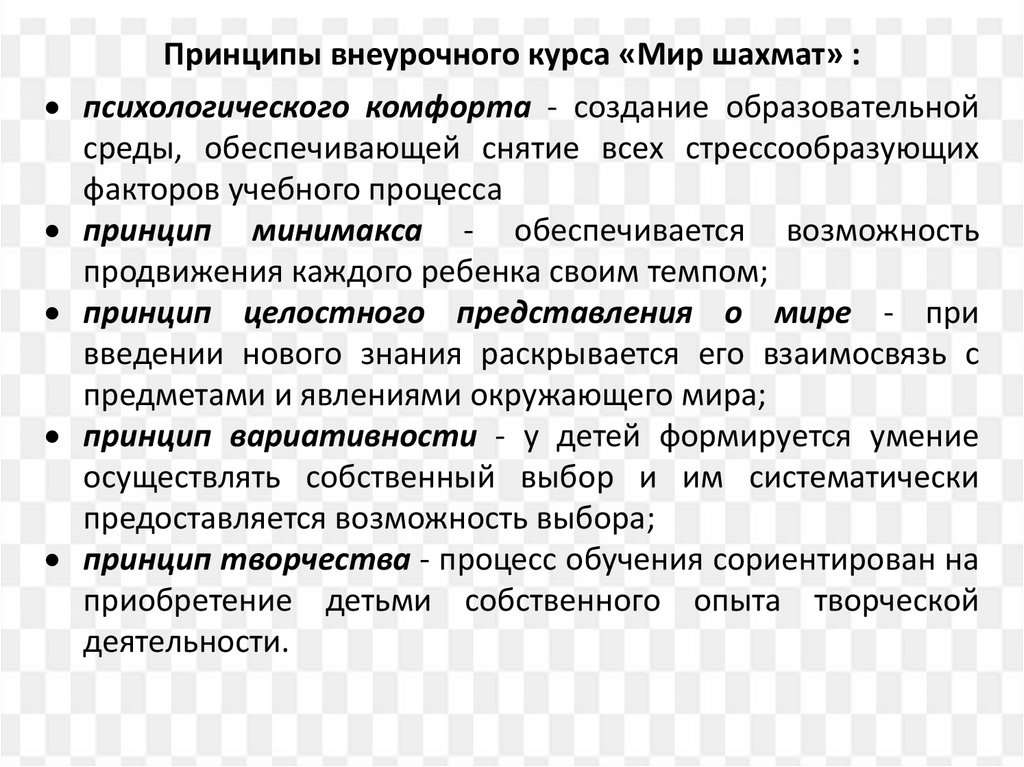 Принципы внеурочного курса «Мир шахмат» :психологического комфорта - создание образовательной