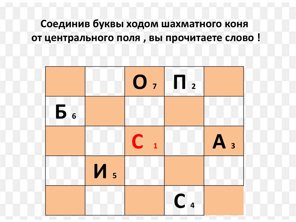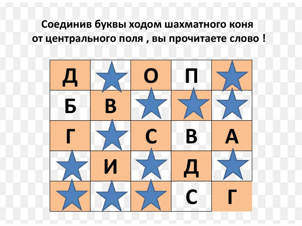 Соединив буквы ходом шахматного коняот центрального поля , вы прочитаете слово !