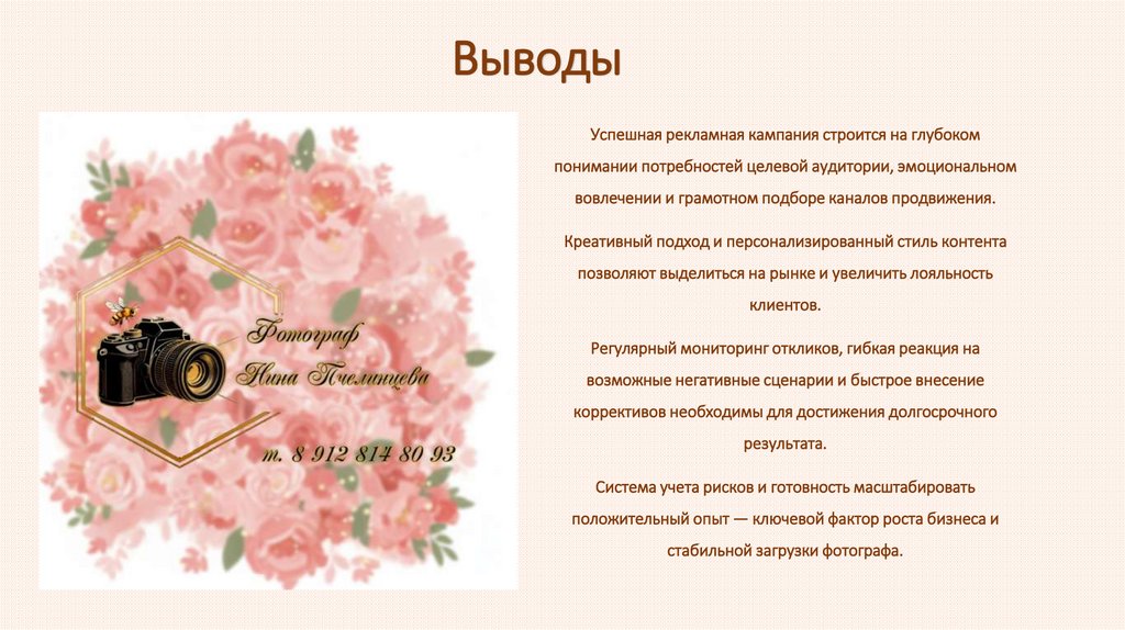 ВыводыУспешная рекламная кампания строится на глубоком