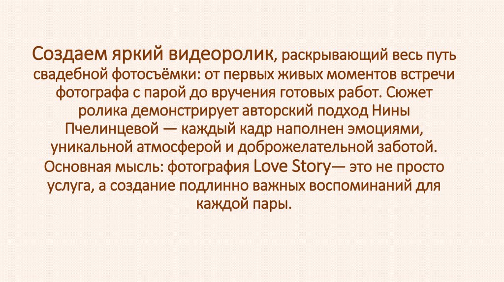 Создаем яркий видеоролик, раскрывающий весь путьсвадебной фотосъёмки: от первых живых моментов встречи