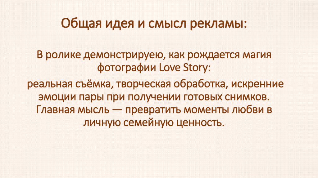 Креативная стратегия рекламной кампании — создание эмоциального видеоролика«Волшебный путь ваших романтических воспоминаний».