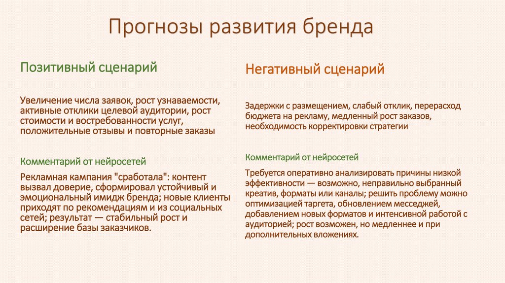 Прогнозы развития брендаПозитивный сценарий
