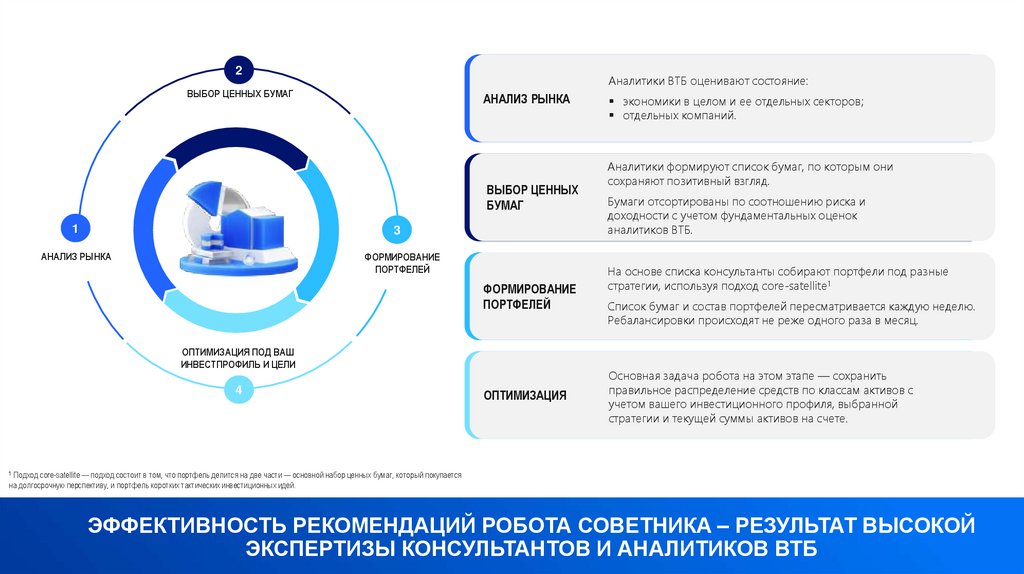 1 Подход core-satellite — подход состоит в том, что портфель делится на две части — основной набор ценных бумаг, который покупается