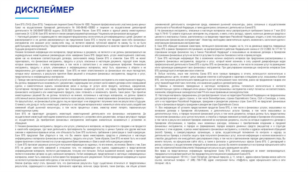 ДИСКЛЕЙМЕРБанк ВТБ (ПАО) (Банк ВТБ). Генеральная лицензия Банка России № 1000. Лицензия профессионального участника рынка ценных