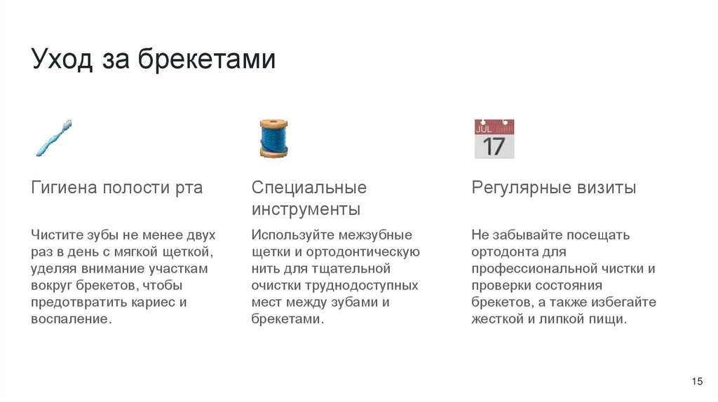 особенности. 3. Разработать рекомендации по уходу за брекетами.