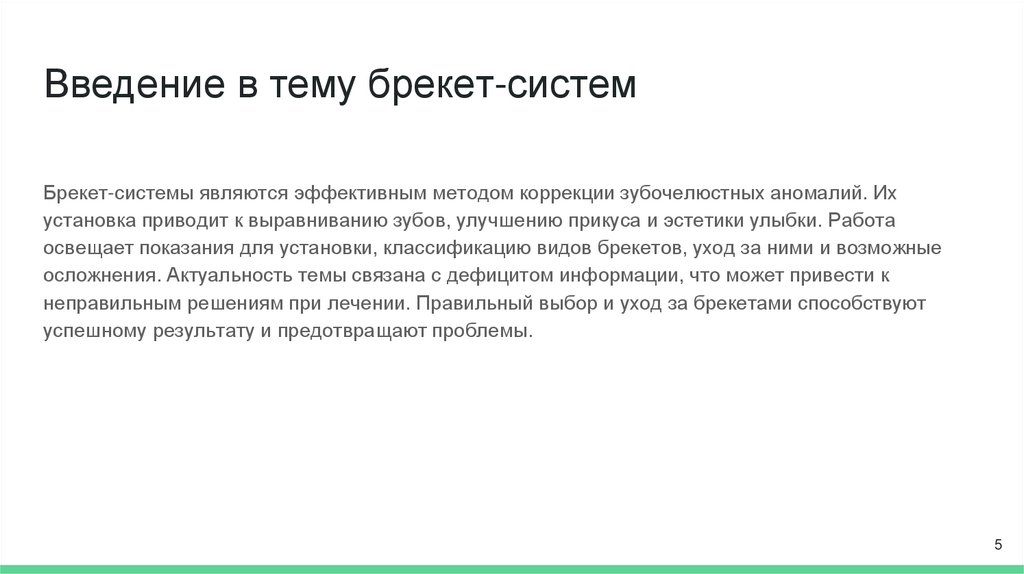 ЦельИзучить различные аспекты использования брекет-систем в ортодонтии.