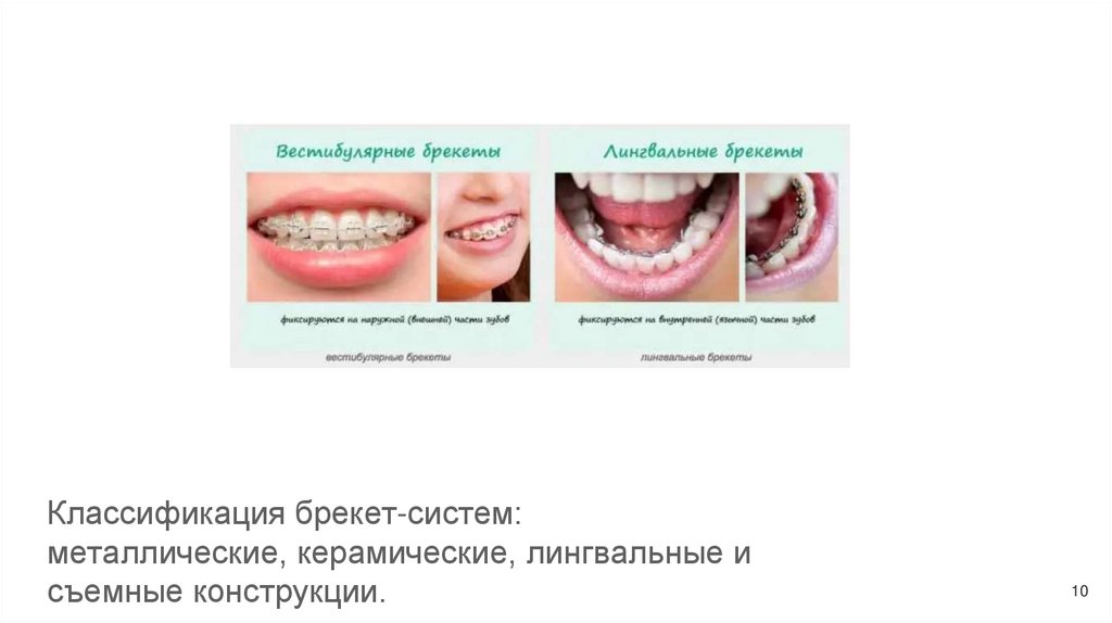Классификация брекет-систем:металлические, керамические, лингвальные и