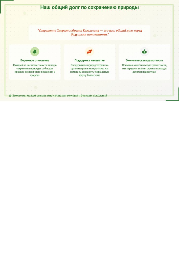Наш общий долг по сохранению природы"Сохранение биоразнообразия Казахстана — это наш общий долг перед