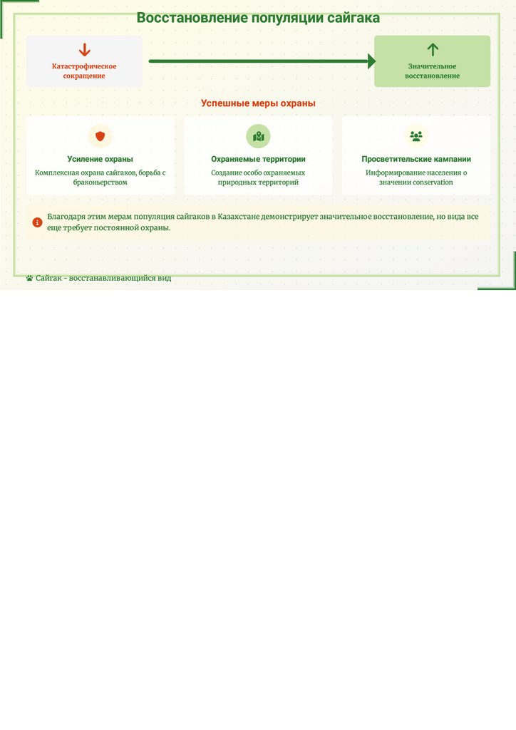Благодаря этим мерам популяция сайгаков в Казахстане демонстрирует значительное восстановление, но вида все