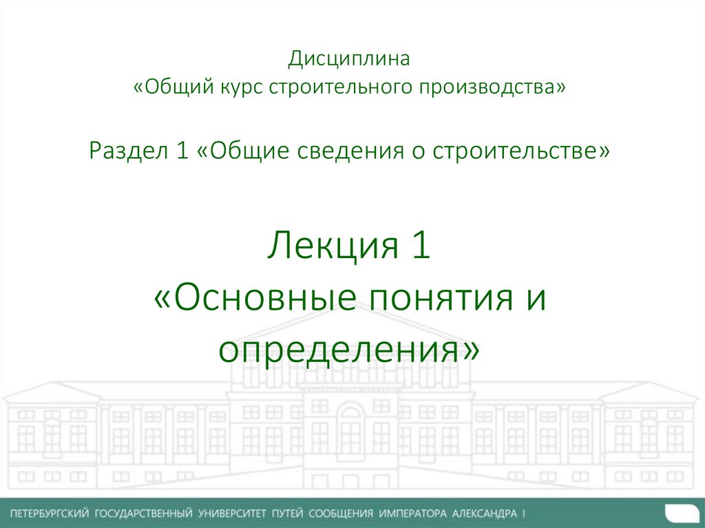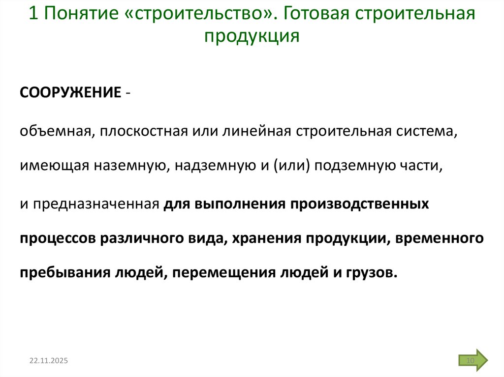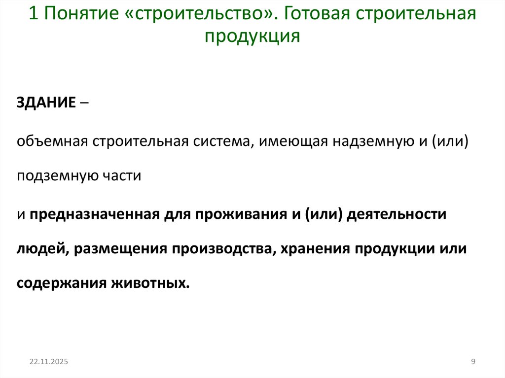 1. Понятие «строительство». Готовая строительная продукция.2. Виды строительства по назначению. Виды капитального