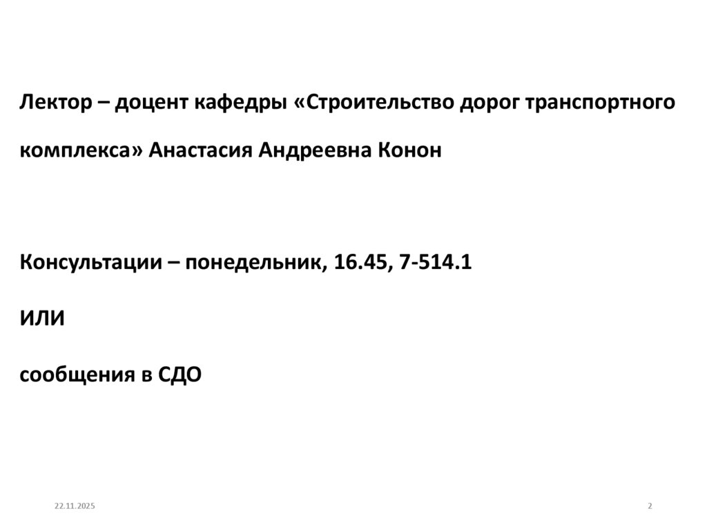 Лектор – доцент кафедры «Строительство дорог транспортногокомплекса» Анастасия Андреевна Конон