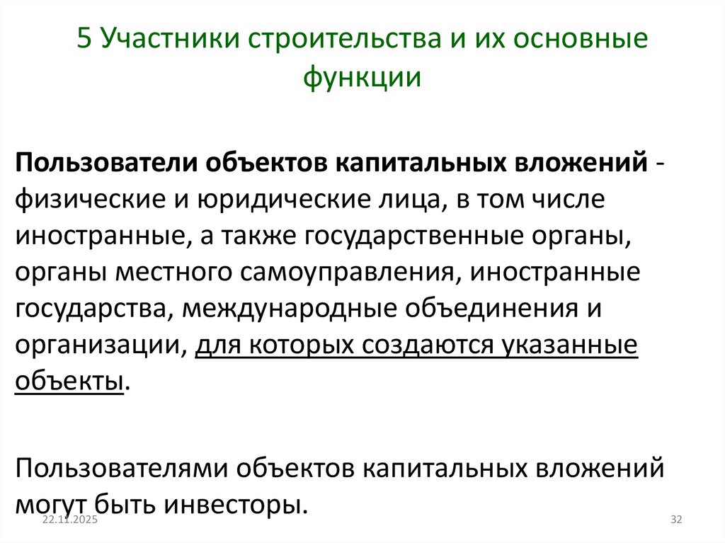 Пользователи объектов капитальных вложений физические и юридические лица, в том числе