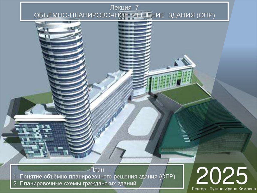 Лекция 7ОБЪЁМНО-ПЛАНИРОВОЧНОЕ РЕШЕНИЕ ЗДАНИЯ (ОПР)