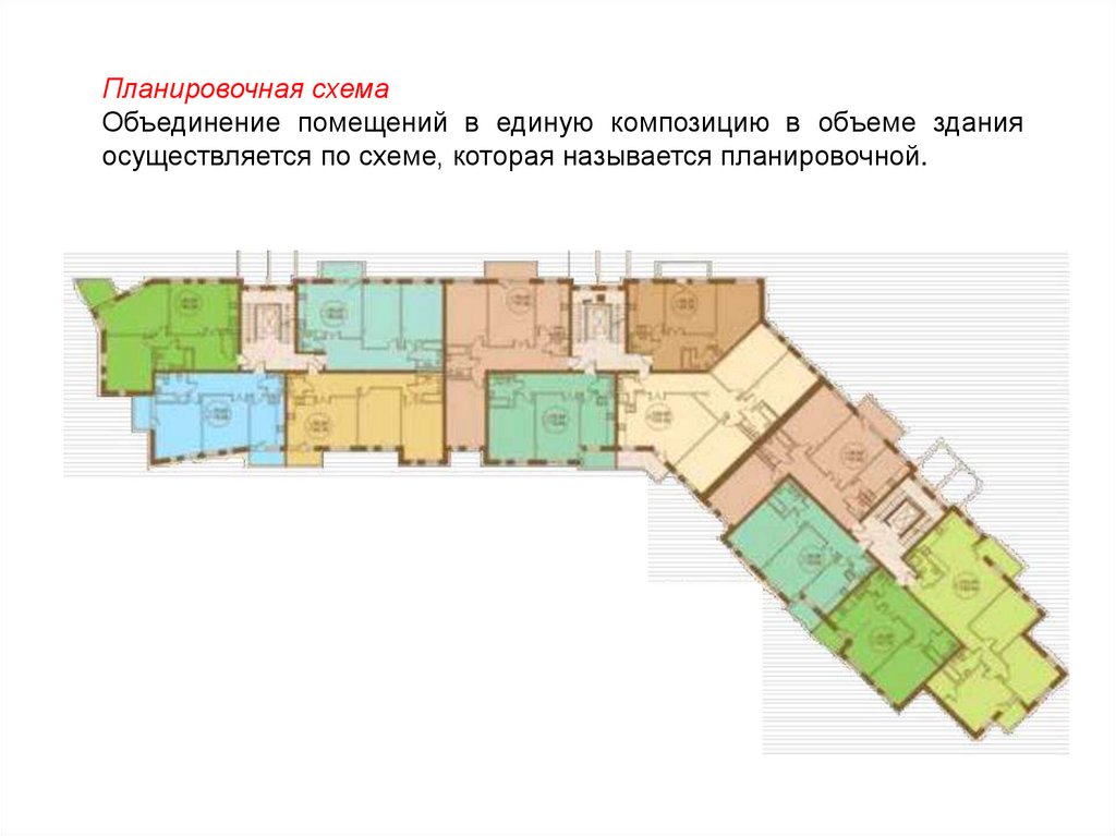 Планировочная схемаОбъединение помещений в единую композицию в объеме здания