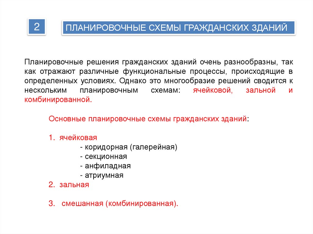 2. Планировочные схемы гражданских зданий