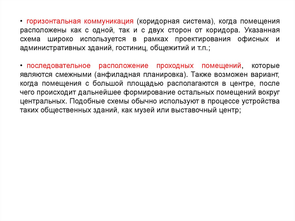• коммуникационные: горизонтальные (коридоры, галереи, переходы) и