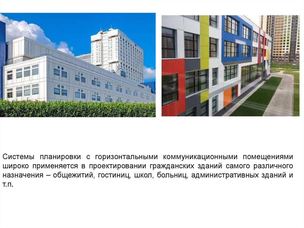 комбинированную систему планировки, поскольку в здании объединяются