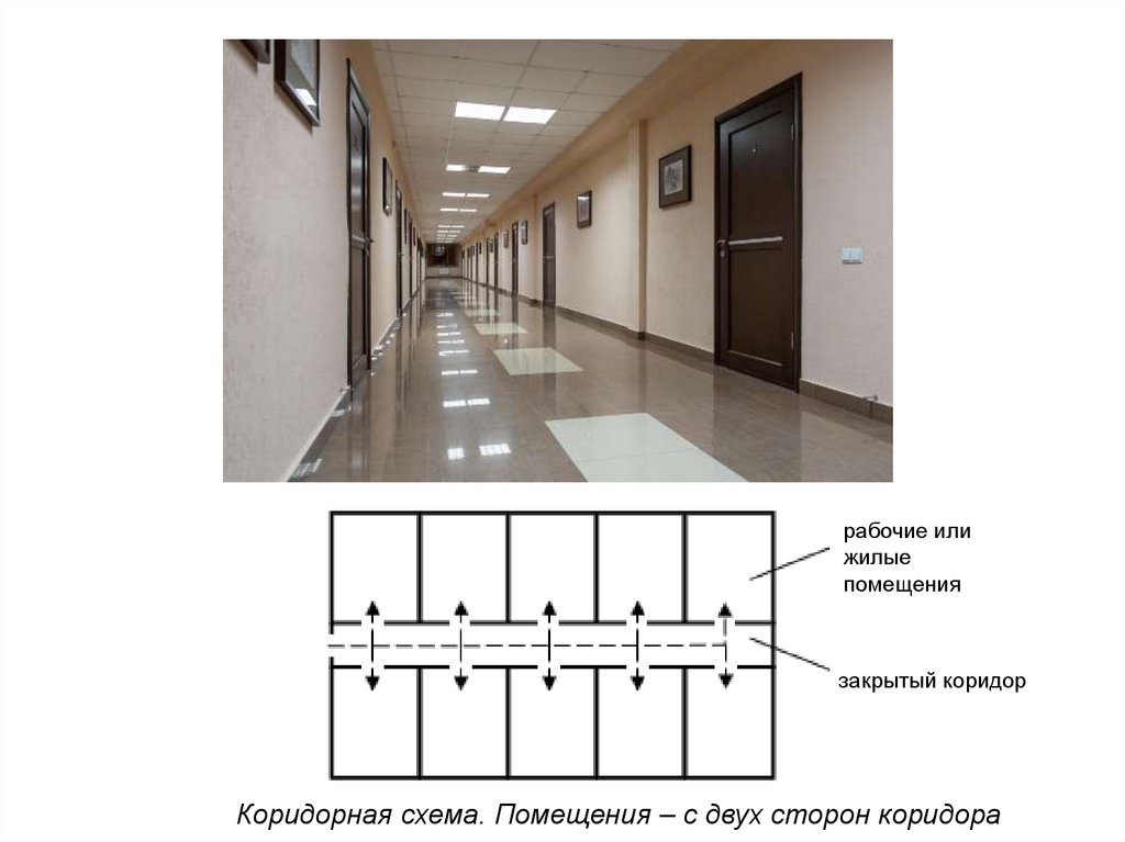 анфиладная, атриумная и другие).Так, например, в здании крупного