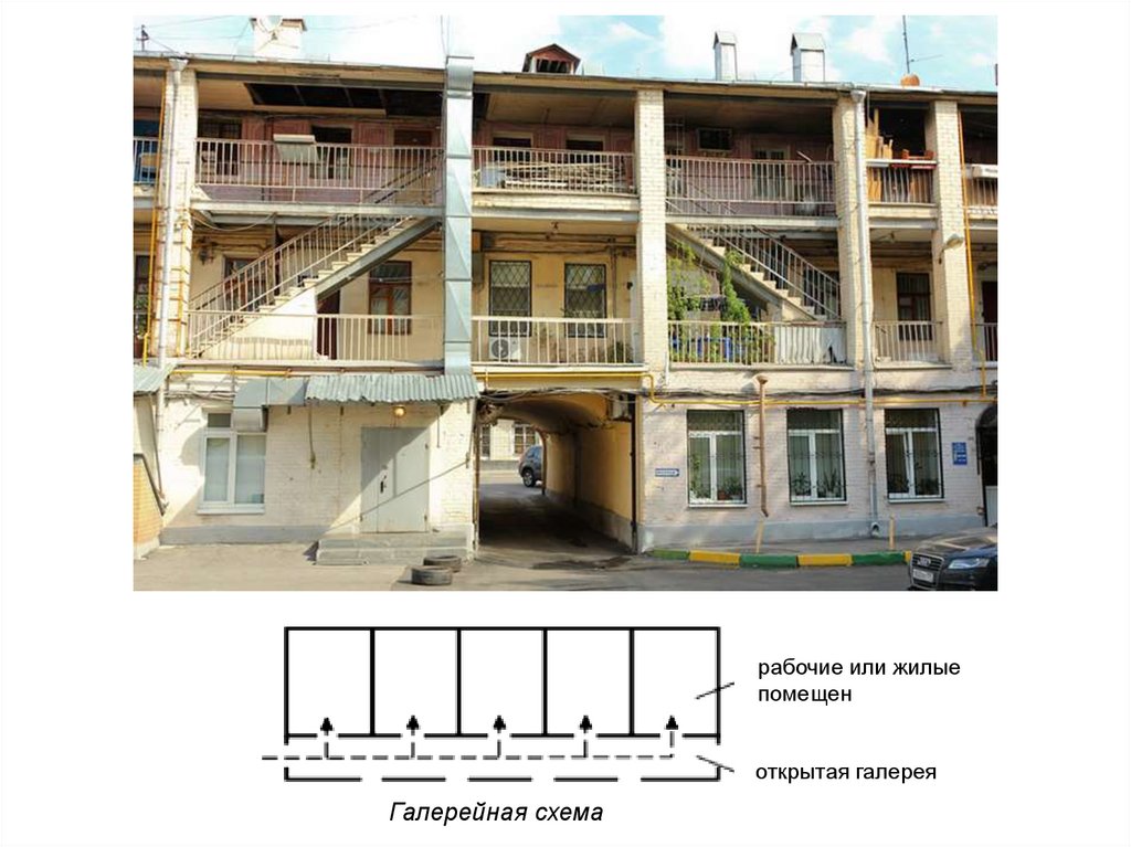 • Система организации жизни в таком здании жестко соответствует