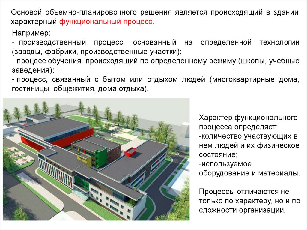 Основой объемно-планировочного решения является происходящий в зданиихарактерный функциональный процесс.