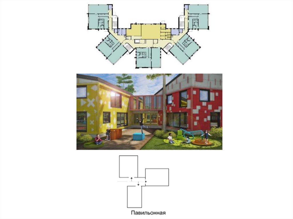 • Все помещения здания четко разделены на функциональные группы.