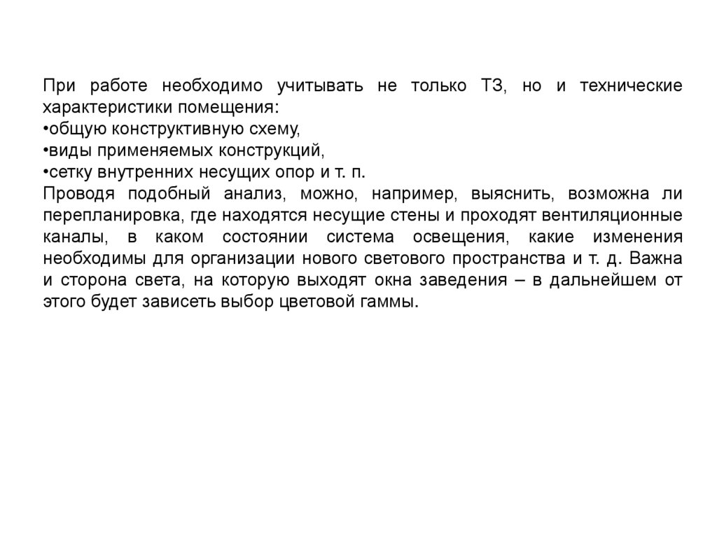 При работе необходимо учитывать не только ТЗ, но и техническиехарактеристики помещения: