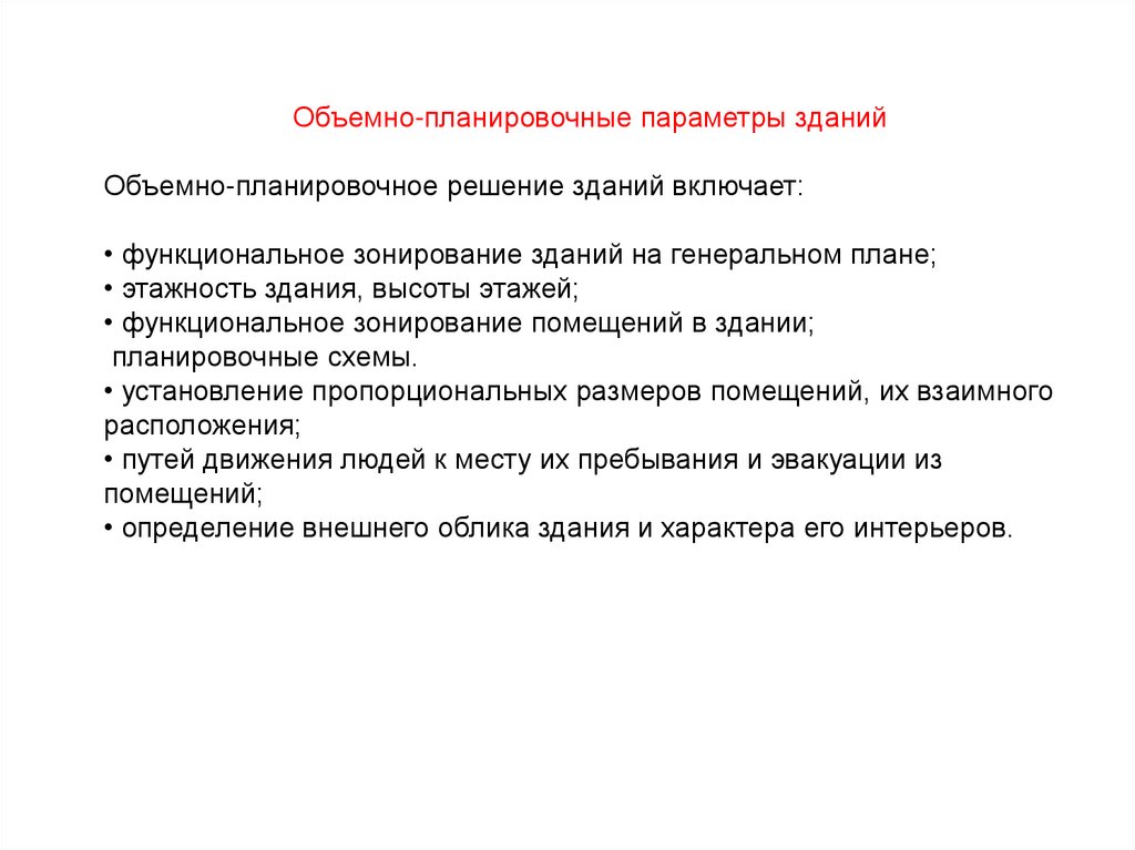 Объемно-планировочные параметры зданийОбъемно-планировочное решение зданий включает: