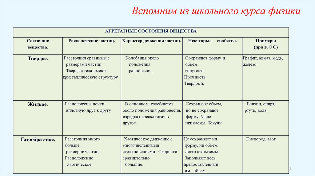 Вспомним из школьного курса физикиАГРЕГАТНЫЕ СОСТОЯНИЯ ВЕЩЕСТВА