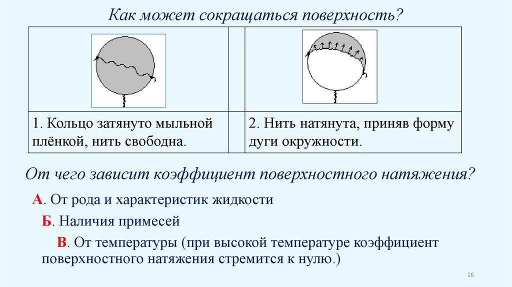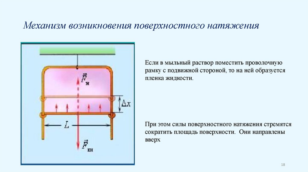 Механизм возникновения поверхностного натяженияЕсли в мыльный раствор поместить проволочную