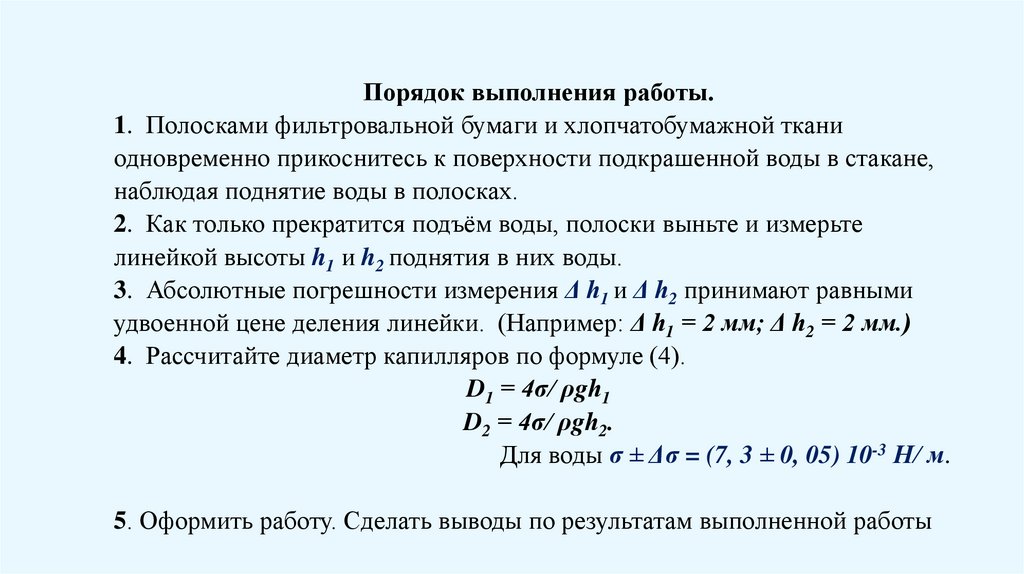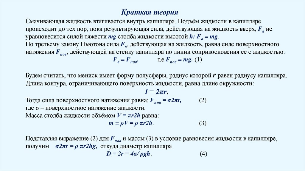 Закономерности капиллярных явленийh = 2σ /ρ g r