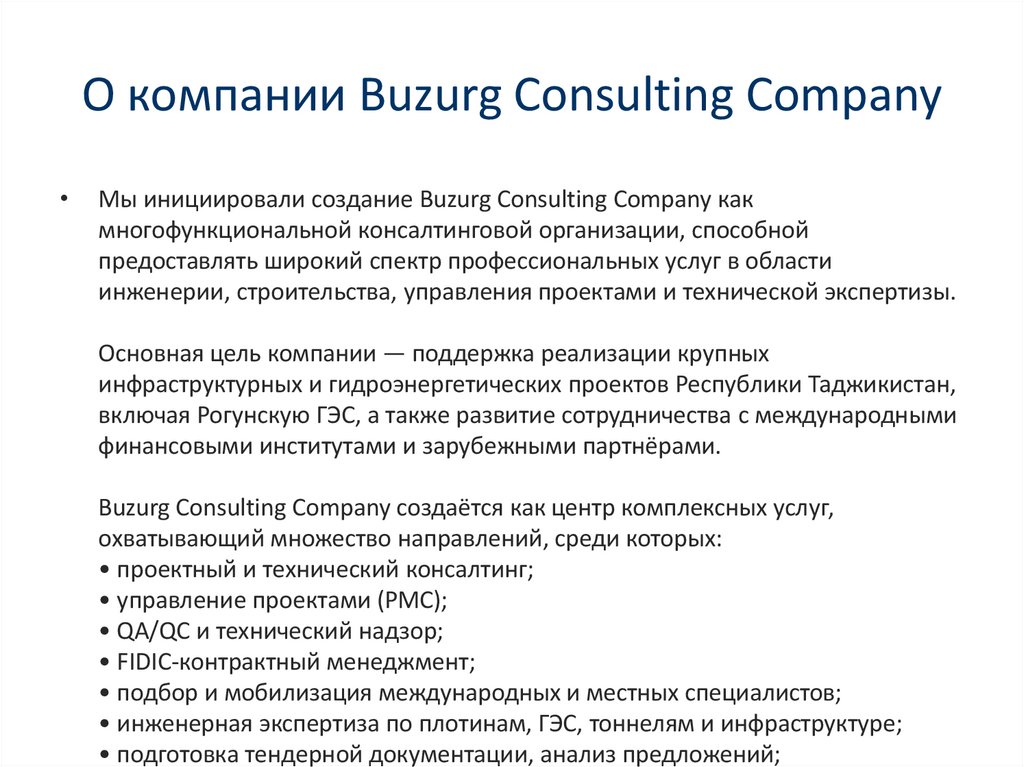О компании Buzurg Consulting CompanyМы инициировали создание Buzurg Consulting Company как