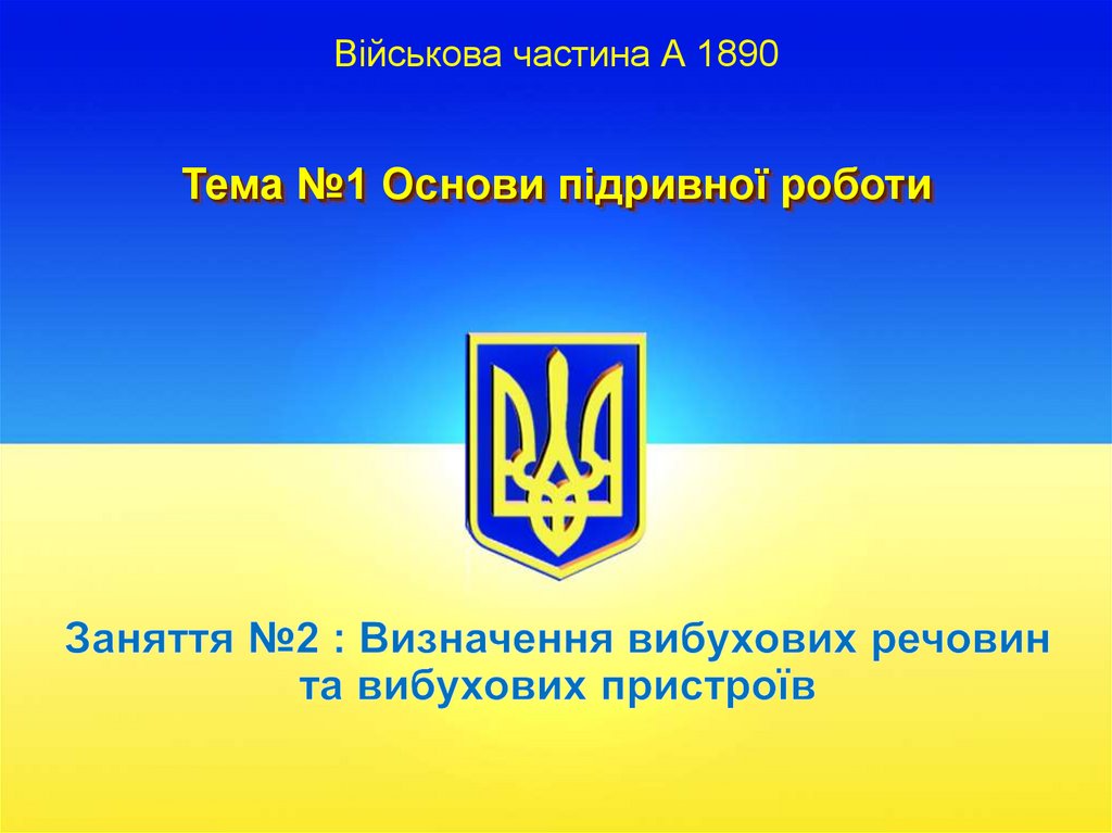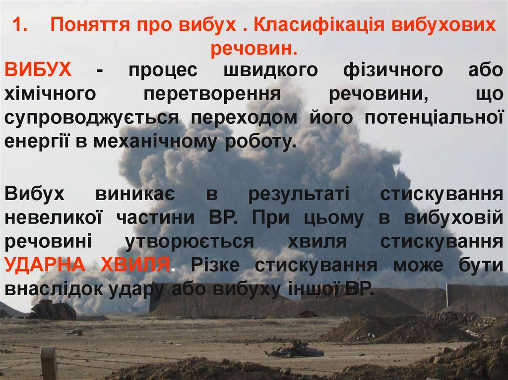 Навчальні питання :1. Поняття про вибух. Класифікація вибухових речовин.