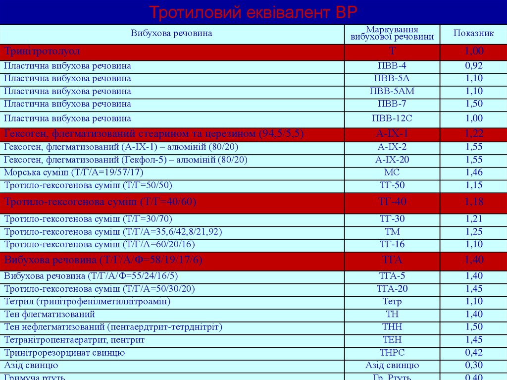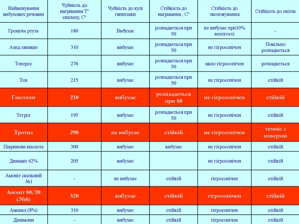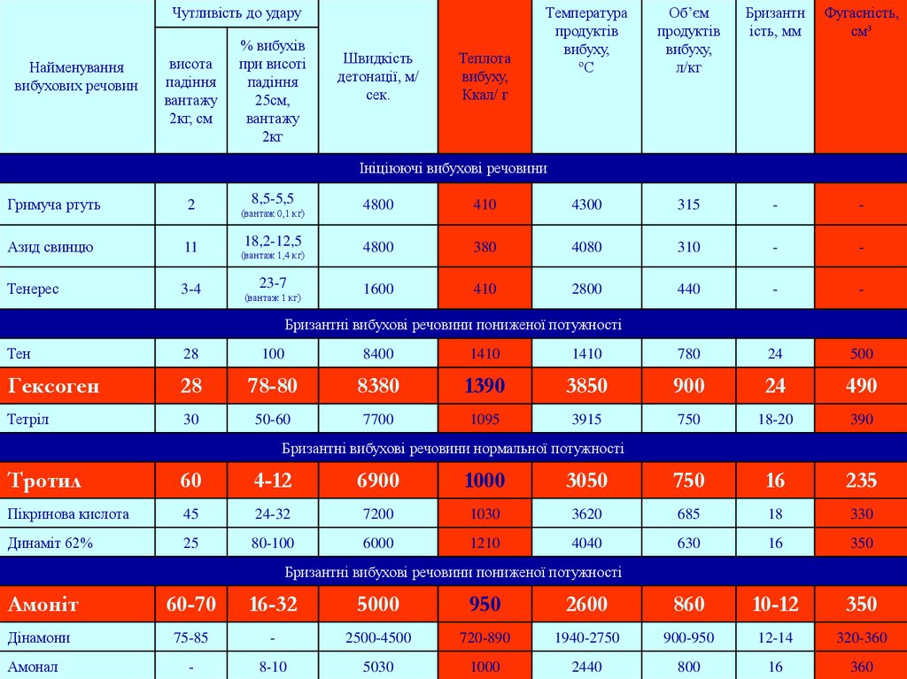 7. ОСНОВНІ ВЛАСТИВОСТІ ВИБУХОВИХ РЕЧОВИН