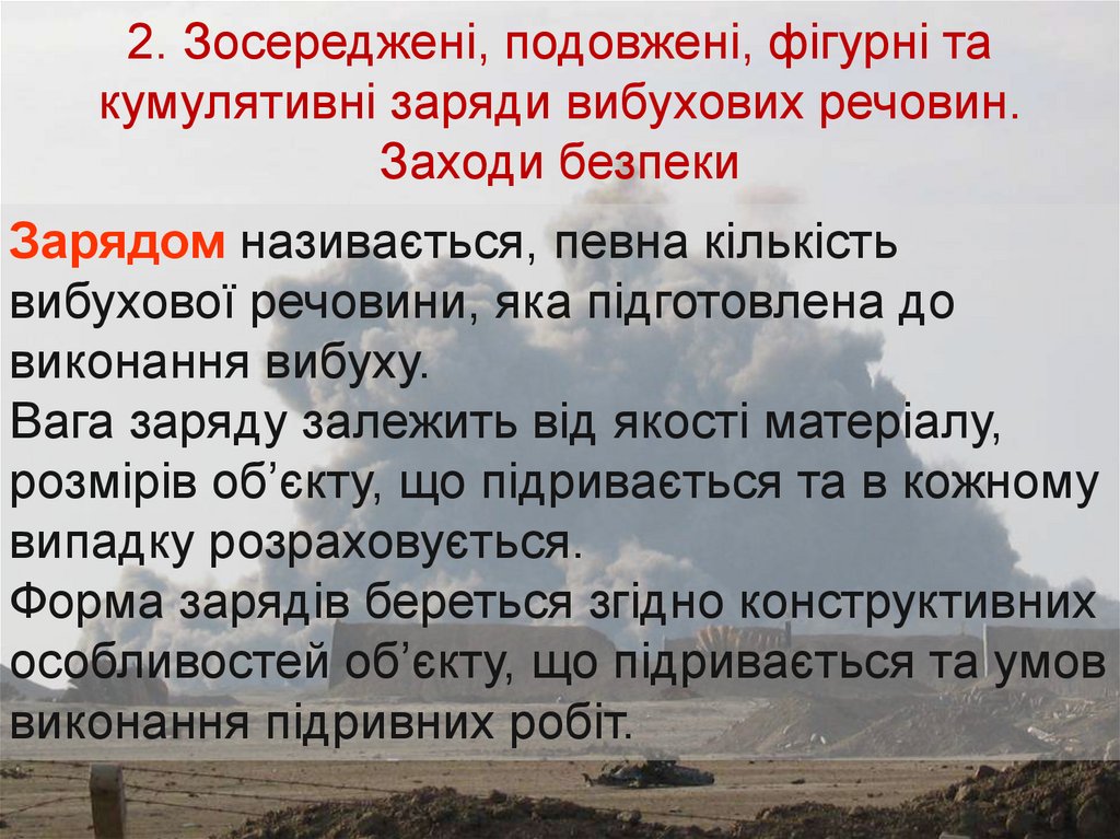 2. Зосередженні та подовжені заряди вибухових речовин,