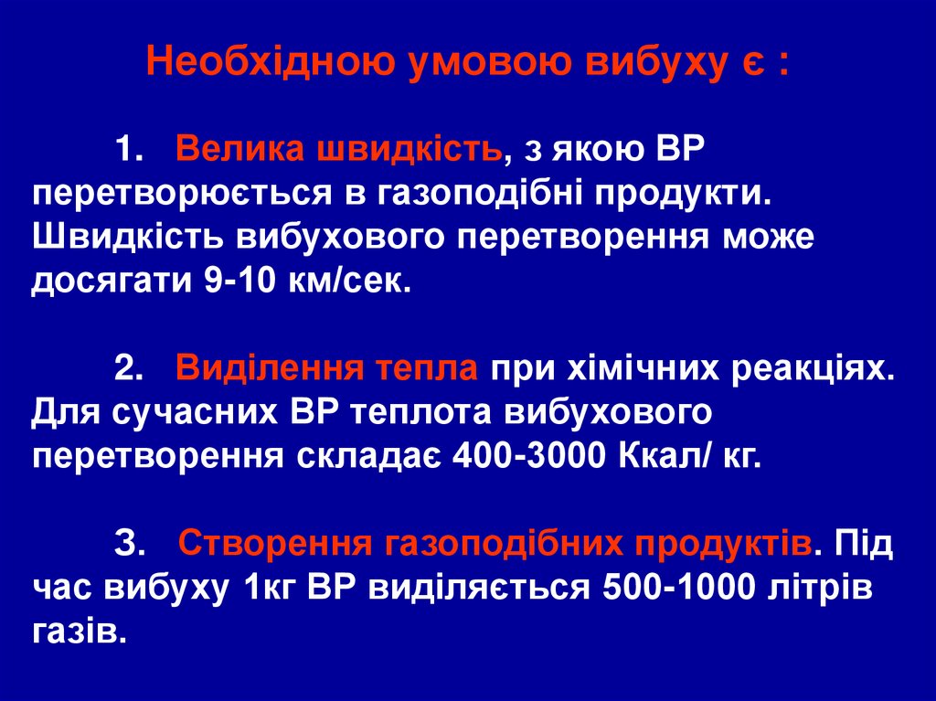 Необхідною умовою вибуху є :1. Велика швидкість, з якою ВР