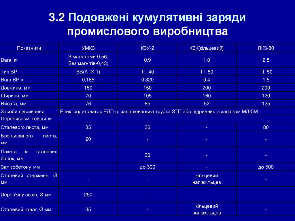 3.2 Подовжені кумулятивні зарядипромислового виробництва