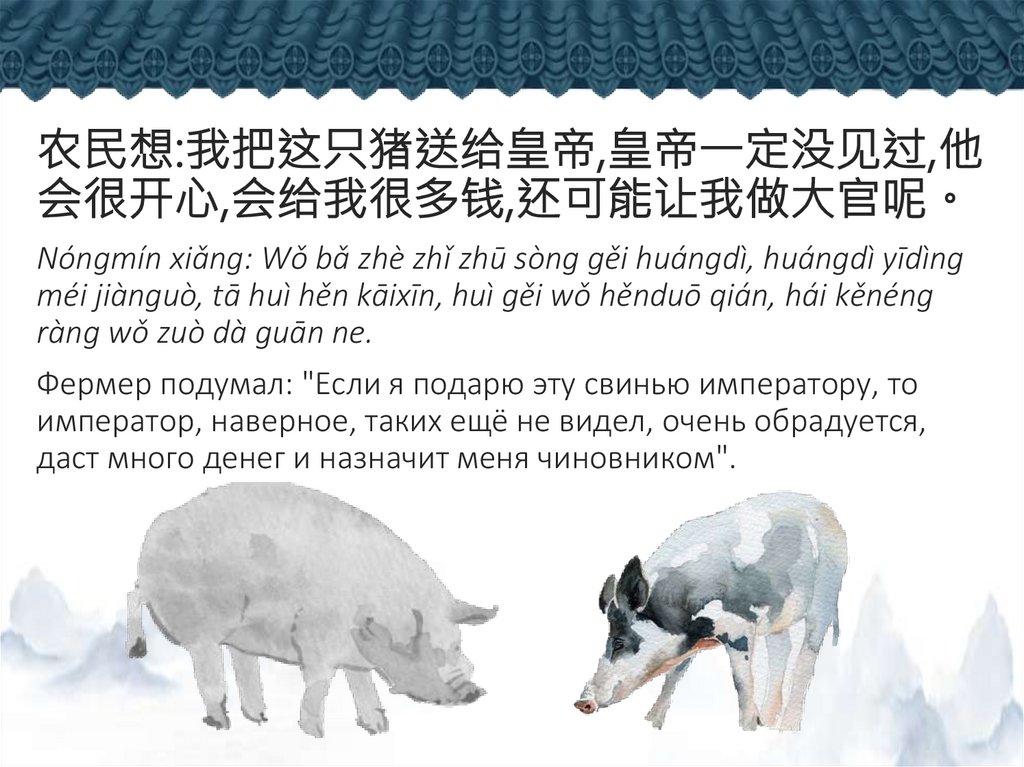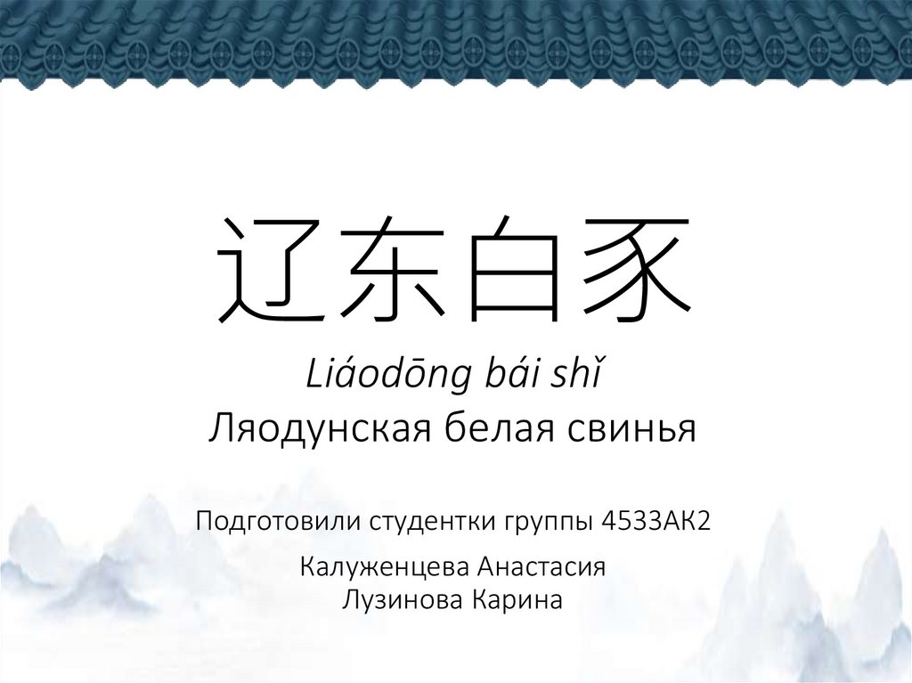 1. 辽东白豕 Liáodōng bái shǐ Ляодунская белая свинья