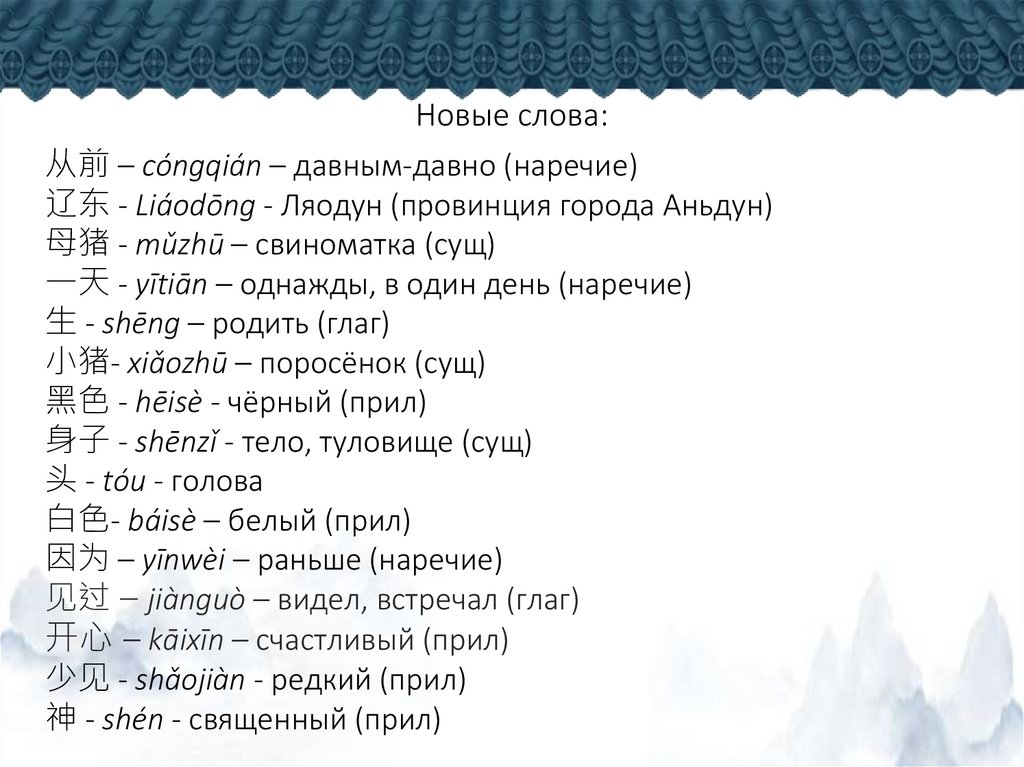 Новые слова:从前 – cóngqián – давным-давно (наречие)